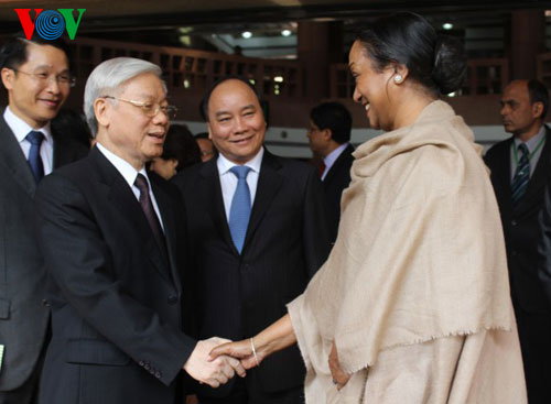 Chủ tịch Hạ viện Ấn Độ Meira Kuma chào đón Tổng Bí thư Nguyễn Phú Trọng