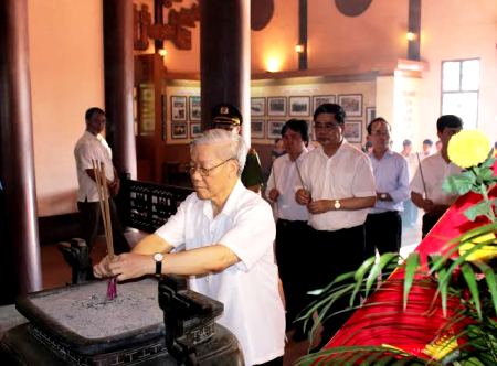 | Tổng Bí thư Nguyễn Phú Trọng dâng hương tại Khu tưởng niệm Bác Hồ. |