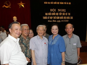 | Tổng Bí thư Nguyễn Phú Trọng với cử tri quận Hoàn Kiếm. (Ảnh: TTXVN) |