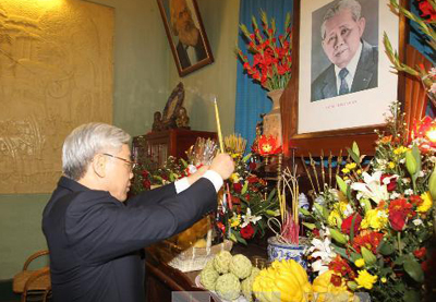 Tưởng nhớ công lao to lớn của cố Tổng Bí thư Lê Duẩn, nhà lãnh đạo lỗi lạc của cách mạng Việt Nam, người học trò xuất sắc của Chủ tịch Hồ Chí Minh, Tổng Bí thư Nguyễn Phú Trọng nguyện cùng toàn Đảng, toàn quân và toàn dân nỗ lực phấn đấu thực hiện thắng lợi các mục tiêu nhiệm vụ mà Nghị quyết Đại hội XI của Đảng đã đề ra, xây dựng đất nước Việt Nam giàu mạnh, dân chủ, công bằng, văn minh.