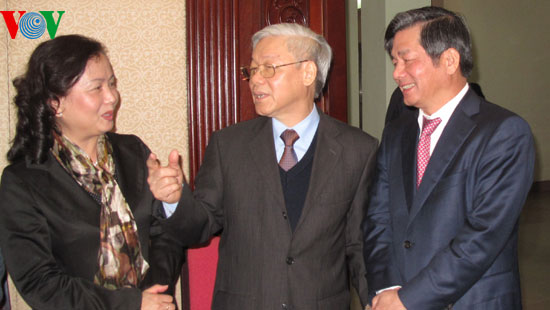 Về các kiến nghị của Bộ Kế hoạch và Đầu tư, Tổng Bí thư cho rằng các vấn đề nêu ra rất xác đáng , trong đó có việc sơ kết đánh giá tình hình thực hiện Nghị quyết Đại hội XI, đề nghị Bộ phối hợp cùng các Bộ, Ban, ngành chuẩn bị nội dung này.