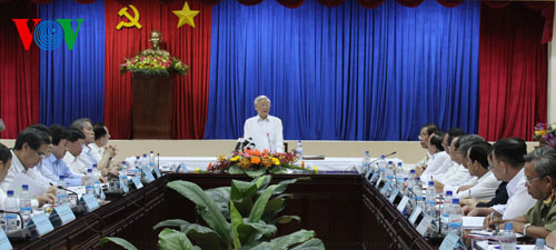| Tổng Bí thư Nguyễn Phú Trọng phát biểu tại buổi làm việc với cán bộ chủ chốt tỉnh Bình Dương. |