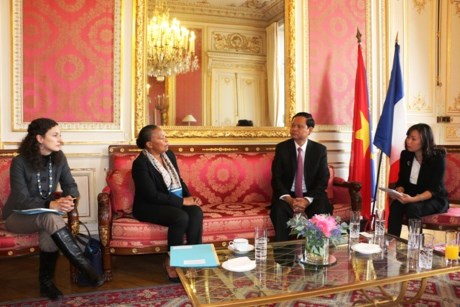 | Tổng Thanh tra Huỳnh Phong Tranh gặp xã giao Bộ trưởng Bộ Tư pháp Cộng hòa Pháp, bà Christiane Taubira. Ảnh: baomoi.com |
