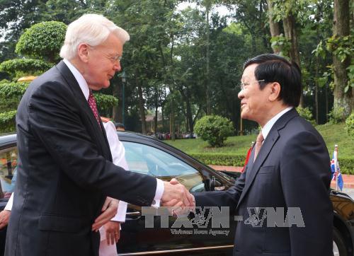 | Chủ tịch nước Trương Tấn Sang đón Tổng thống Iceland Ólafur Ragnar Grímsson. Ảnh: Nguyễn Khang – TTXVN |