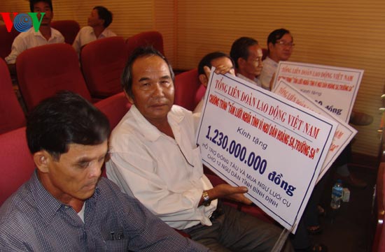 (VOV5) -Ban Tổ chức “Tấm lưới nghĩa tình” đã trực tiếp hỗ trợ cho ngư dân miền Trung tổng số tiền gần 13 tỷ đồng.