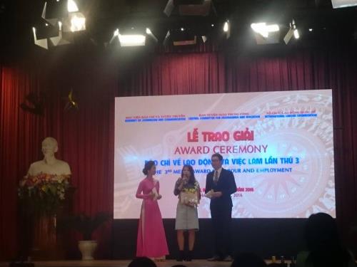 Đây là giải báo chí nhằm tôn vinh những nhà báo đã có sự quan tâm đặc biệt, dấn thân vào những điểm nóng của lĩnh vực lao động - việc làm, có đóng góp tích cực vào quá trình tổ chức lao động và việc làm của xã hội, mang đến cho người dân cuộc sống tốt đẹp, góp phần vào sự phát triển xã hội. Ban Tổ chức nhận được 250 tác phẩm được đăng tải trên các loại hình báo chí: báo in, báo mạng, báo phát thanh và truyền hình. Qua hai vòng sơ khảo và chung khảo, Ban Giám khảo bình chọn được 2 giải nhất, 2 giải nhì, 4 giải ba và 6 giải khuyến khích cho các tác phẩm có loại hình báo chí khác nhau.
