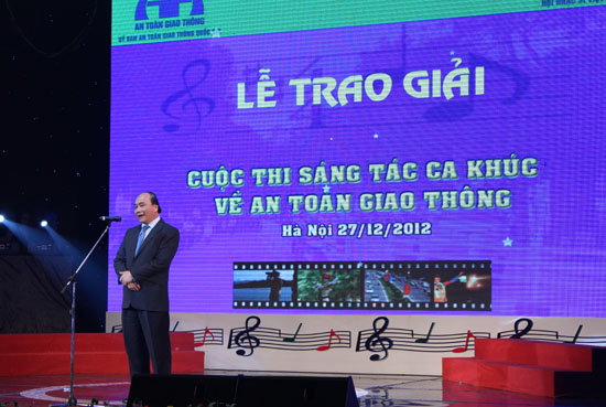 Phó Thủ tướng Nguyễn Xuân Phúc nhấn mạnh: “Với hàng trăm tác giả và trên 400 tác phẩm về an toàn giao thông Quốc gia đã được công bố. Đó thể hiện sự quan tâm của toàn xã hội đến công tác an toàn giao thông quốc gia – một vấn đề nóng bỏng ở VN và nhiều nước trên thế giới. Tôi chúc mừng thành công của cuộc thi này, xin hoan nghênh hội nhạc sỹ, Đài Tiếng nói Việt Nam tham gia tận tụy công việc này.”