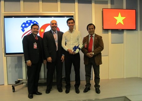 (VOV5) - Hình tượng logo đoạt giải nhất mang hình và màu sắc quốc kỳ Việt Nam và Hoa Kỳ, thể hiện mối quan hệ giữa hai quốc gia đang có nhiều sự hợp tác trong phát triển.