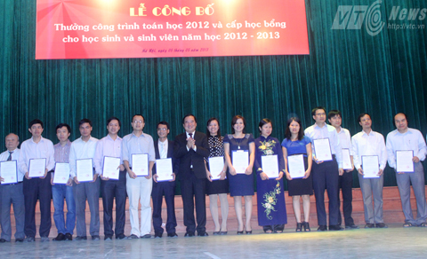 (VOV5)- Sáng nay, 5/5, tại Hà Nội, Chương trình trọng điểm quốc gia phát triển Toán học giai đoạn 2010-2020 (thuộc Bộ Giáo dục và Đào tạo) tổ chức lễ trao thưởng công trình toán học 2012 và cấp học bổng cho học sinh và sinh viên năm học 2012-2013.