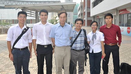 | Giáo sư Odon Vallet và các sinh viên Việt Nam (Ảnh: tienphong.vn) |