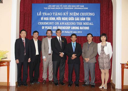 (VOV5)- Ngày 19/7, tại Hà Nội, Chủ tịch Liên hiệp các tổ chức hữu nghị Việt Nam Vũ Xuân Hồng trao Kỷ niệm chương “Vì hòa bình, hữu nghị giữa các dân tộc” tặng Giáo sư William Walmsley Hall, Giám đốc tổ chức The Atlantic Philanthropies (AP), vì những đóng góp tích cực trong công cuộc xóa đói giảm nghèo tại Việt Nam.