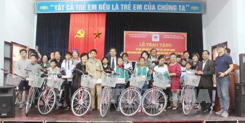 | Trao xe đạp cho học sinh mồ côi (Ảnh: TTXVN) |