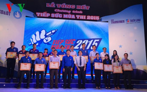 Tại lễ Tổng kết chương trình Tiếp sức mùa thi năm 2015, diễn ra sáng 19/7, tại thành phố Hồ Chí Minh, Ban Tổ chức cho biết: Với gần 60 ngàn sinh viên tình nguyện, lực lượng tiếp sức mùa thi đã hỗ trợ, tư vấn cho gần 700 ngàn lượt thí sinh và người nhà; hỗ trợ di chuyển cho gần 163 ngàn thí sinh. Hơn 280 ngàn chỗ trọ giá rẻ và gần 61 ngàn chỗ ở miễn phí đã được các tình nguyện viên giới thiệu đến sĩ tử, phụ huynh. Bên cạnh đó, chương trình Tiếp sức mùa thi năm nay còn hỗ trợ trên 400 ngàn suất ăn, gần 230 ngàn vé xe buýt và gần 280 ngàn cẩm nang miễn phí. Tổng kinh phí các tỉnh, thành huy động để triển khai chương trình là trên 18 tỷ 500 triệu đồng.
