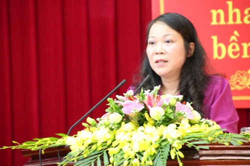 | Bà Hoàng Thị Hạnh phát biểu tại Hội nghị. Ảnh: btgcp.gov.vn |