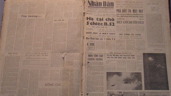 | Một bài viết về chiến thắng "Điện Biên Phủ trên không" trên trang nhất báo Nhân Dân thời ấy |