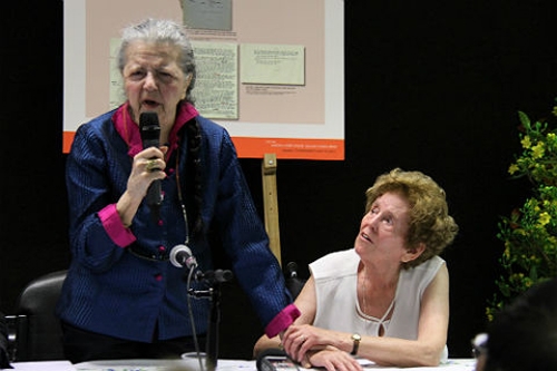 | Bà Madeleine Riffaud (trái) và Raymonde Dien kể về những kỷ niệm sâu sắc trong những lần được gặp Bác Hồ. |