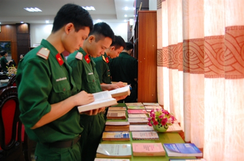 | Chiến sĩ Lữ đoàn 144 (Bộ Tổng tham mưu) tham quan triển lãm. - Ảnh: qdnd.vn |
