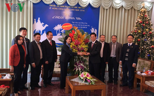 (VOV5) - Nhân dịp Lễ giáng sinh năm 2016, sáng nay, tại Hà Nội, Bà Trương Thị Mai, Trưởng Ban Dân vận Trung ương đã đến thăm, chúc mừng Hội thánh Tin lành Việt Nam (Miền Bắc) và Mục sư Hội trưởng Nguyễn Hữu Mạc.