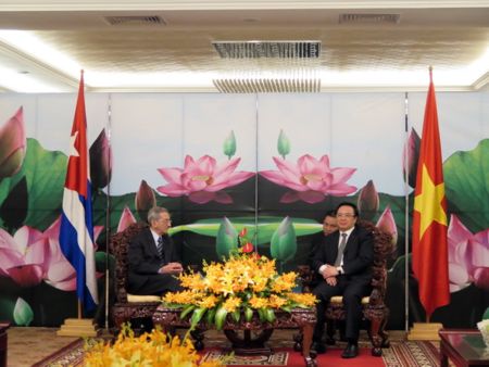 | Đồng chí Hoàng Bình Quân, Trưởng Ban Đối ngoại Trung ương tiếp đồng chí Jose Ramon Balaguer Cabrera, Trưởng Ban Đối ngoại Trung ương Đảng Cộng sản Cuba. (Ảnh: Thanh Hùng) |