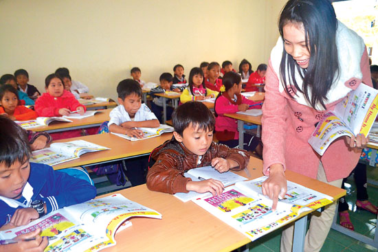 | Tiết học tiếng Anh tại Trường Tiểu học số I An Vĩnh (Ảnh: Báo Quảng Ngãi) |