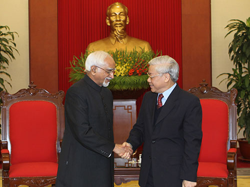 | Tổng Bí thư Nguyễn Phú Trọng tiếp Phó Tổng thống Ấn Độ Mohammad Hamid Ansari vào ngày 15/01/2013 tại Trụ sở Trung ương Đảng (Nguồn: Ảnh: TTXVN) |