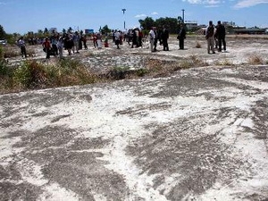 Khu vực bị nhiễm dioxin nặng nhất tại sân bay Đà Nẵng được xử lý đổ bê tông tạm thời (trước đây là khu vực pha trộn, vận chuyển chất điôxin lên máy bay). (Ảnh: Trần Lê Lâm/TTXVN)