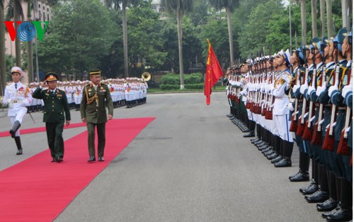 | Thượng tướng Đỗ Bá Tỵ và Thiếu tướng Pehin Tawih, Tư lệnh Lực lượng Vũ trang Hoàng gia Brunei duyệt đội danh dự. |