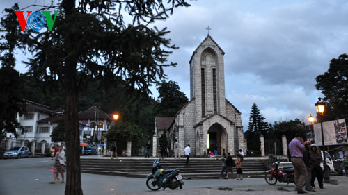 | Nhà thờ đá, biểu tượng của khu du lịch Sa Pa (Lào Cai). |