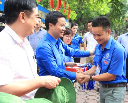 | Trao mũ và thẻ tình nguyện cho các thành viên tham gia đoàn tình nguyện. Ảnh: dangcongsan.vn |