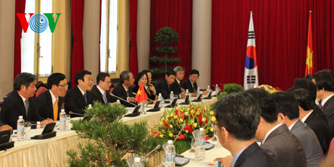 Chủ tịch nước Trương Tấn Sang và Tổng thống Park Geun-hye đã trao đổi ý kiến sâu sắc về các vấn đề hai bên cùng quan tâm như quan hệ song phương Việt Nam-Hàn Quốc, tình hình bán đảo Triều Tiên, khu vực và quốc tế. Hai bên nhất trí tăng cường quan hệ đối tác hợp tác vì sự thịnh vượng chung và nỗ lực vì hạnh phúc của nhân dân hai nước.