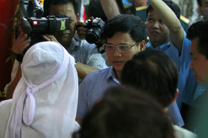 | Đoàn đại biểu UBND TP Hà Nội do ông Ngô Văn Quý, phó chủ tịch UBND TP, viếng, đồng thời trao quyết định đặc cách tuyển dụng vào ngành giáo dục cho chị Trần Thị Hà, vợ anh Khải. Ảnh: tuoitre |