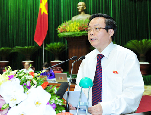 | Chủ nhiệm Ủy ban Tài chính-Ngân sách của Quốc hội Phùng Quốc Hiển trình bày báo cáo thẩm tra Dự thảo Luật sửa đổi, |