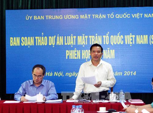 | Phó Chủ tịch Ủy ban Trung ương MTTQ Việt Nam Nguyễn Văn Pha phát biểu tại một phiên họp của Ban soạn thảo Dự án Luật MTTQ Việt Nam (sửa đổi) ngày 6/10/2014. Ảnh: Nguyễn Dân – TTXVN |