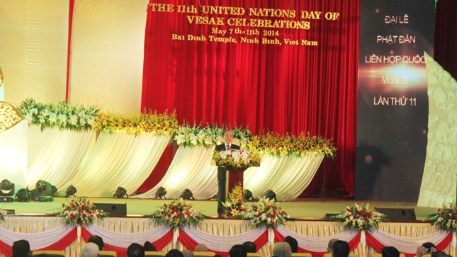 | Chủ tịch Quốc hội phát biểu tại Vesak 2014. Ảnh: báo Pháp luật Việt Nam |