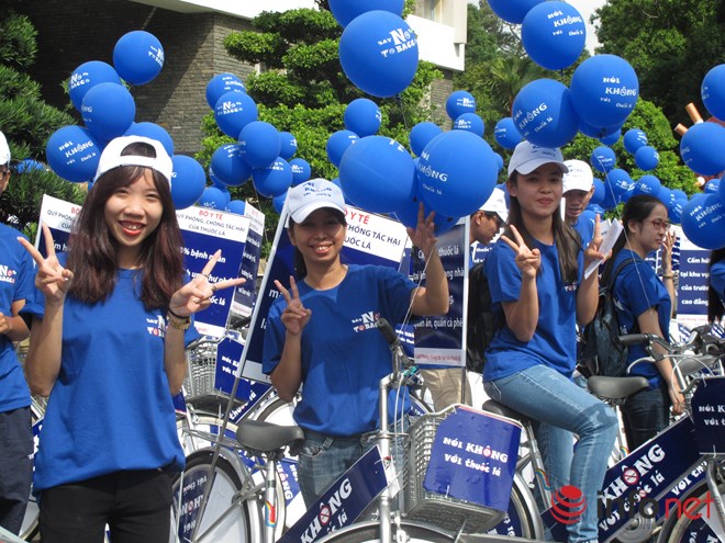 (VOV5) - Sáng nay (30/5), tại Thành phố Hồ Chí Minh, Bộ Y tế Việt Nam tổ chức Lễ Mít tinh hưởng ứng Ngày thế giới không thuốc lá và Tuần lễ quốc gia không thuốc lá (từ ngày 25 đến 31/5). Việt Nam hiện nay là một trong 15 nước có số người hút thuốc lá cao nhất thế giới. Trung bình 2 nam giới từ 15 tuổi trở lên thì có một người hút thuốc lá.