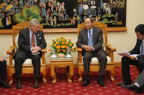 | Thứ trưởng Lê Quý Vương; Phó Trợ lý Bộ trưởng Bộ An ninh Nội địa Hoa Kỳ Matthew H.King tại buổi tiếp. Ảnh Việt Hưng. |