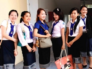| Sinh viên dự bị Khoa tiếng Việt, Đại học quốc gia Lào trước giờ lên lớp. (Ảnh: xaluan) |