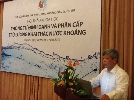 (VOV5) - “Định danh và phân cấp trữ lượng khai thác nước khoáng” là chủ đề hội thảo do Hội đồng đánh giá trữ lượng khoáng sản quốc gia tổ chức sáng 10/7 tại Hà Nội. Nước khoáng là nước thiên nhiên dưới đất, có nơi lộ trên mặt đất, có thành phần, tính chất và một số hợp chất có hoạt tính sinh học đáp ứng tiêu chuẩn, quy chuẩn kỹ thuật Việt Nam hoặc tiêu chuẩn nước ngoài được phép áp dụng tại Việt Nam. Nước khoáng là nguồn tài nguyên quý giá được sử dụng với nhiều mục đích, trong đó chủ yếu là để làm đồ uống và chữa bệnh.