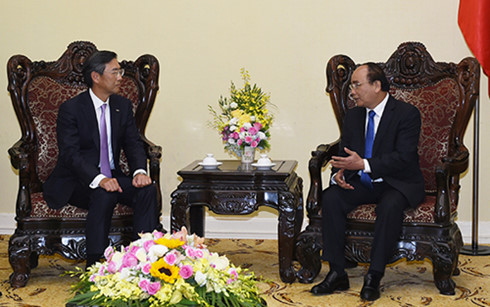 | Thủ tướng Nguyễn Xuân Phúc và Tổng Giám đốc điều hành khu vực châu Á-Thái Bình Dương Ngân hàng Sumitomo Banking Corporation. (Ảnh VGP) |
