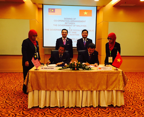 Sáng nay, tại Kuala Lumpur Malaysia, Cục Hàng không dân dụng Việt Nam và Cục Hàng không dân dụng Malaysia ký kết Hiệp định hợp tác Hàng không dân dụng dưới sự chứng kiến của Bộ trưởng Bộ Giao thông Vận tải Việt Nam Đinh La Thăng và Bộ trưởng Bộ Giao thông Vận tải Malaysia Lion Tiong Lai.