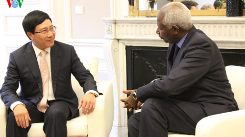 | Bộ trưởng Phạm Bình Minh gặp Tổng thư ký Tổ chức Pháp ngữ Abdou Diouf |