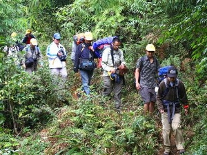 Du khách trên hành trình khám phá Fansipan. (Ảnh: Phương Hoa/TTXVN)