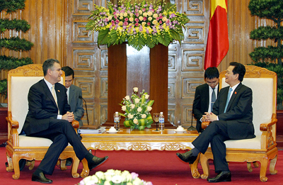 Thủ tướng Nguyễn Tấn Dũng nhấn mạnh Việt Nam mong muốn cùng với Hoa Kỳ tiếp tục đưa quan hệ 2 nước ngày càng phát triển sâu rộng, hiệu quả hơn, vì lợi ích chính đáng của cả hai nước. Chính phủ Việt Nam luôn hoan nghênh và tạo các điều kiện thuận lợi cho các doanh nghiệp của Hoa Kỳ sang hợp tác, đầu tư hiệu quả tại Việt Nam. Thủ tướng Nguyễn Tấn Dũng đề nghị Hoa Kỳ sớm công nhận Việt Nam là nền kinh tế thị trường, cho đây là việc làm thiết thực góp phần thúc đẩy quan hệ hợp tác thương mại, đầu tư giữa hai nước./.
