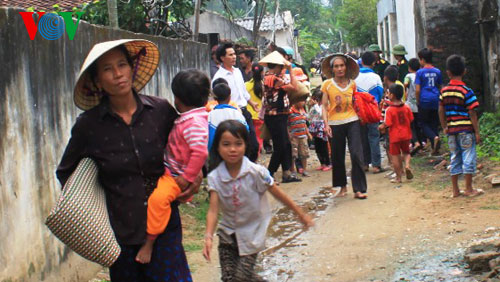 | Người dân xã Hoằng Trường, huyện Hoằng Hóa, tỉnh Thanh Hóa sơ tán đến nơi an toàn |