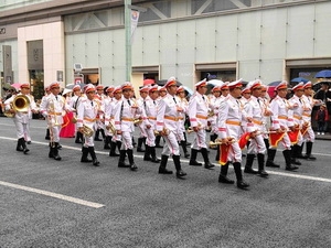 | Đoàn cảnh sát Việt Nam tham gia diễu hành ở khu phố Ginza, Tokyo ngày 28/10. (Ảnh: Vietnam+) |
