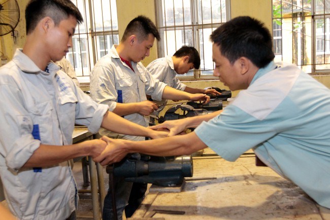 | Giờ thực hành của sinh viên Trường Cao đẳng nghề công nghiệp Hà Nội (Ảnh: Báo Lao động) |
