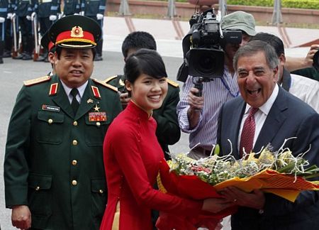 Bộ trưởng Quốc phòng Việt Nam Phùng Quang Thanh trong lễ đón người đồng cấp Mỹ sáng ngày 4/6.