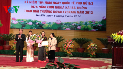 Hai nhà khoa học nữ tiêu biểu được trao Giải thưởng Kovalevskaia năm 2013 là: Phó giáo sư, Tiến sĩ, bác sĩ Lê Thị Luân, Phó Giám đốc Trung tâm nghiên cứu vaccine và sinh phẩm y tế, Bộ Y tế; Phó giáo sư, Tiến sĩ Nguyễn Thị Bích Thủy, nguyên Giám đốc Viện Chuyên ngành vật liệu xây dựng và bảo vệ công trình - Viện Khoa học và Công nghệ GT-VT, Bộ GT-VT.