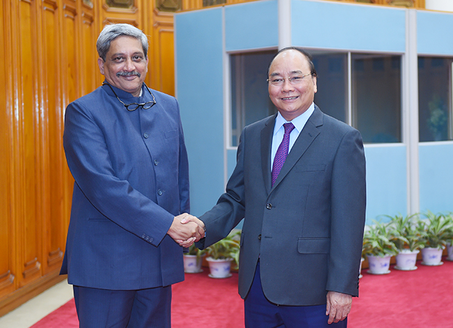 | Thủ tướng Nguyễn Xuân Phúc và Bộ trưởng Quốc phòng Ấn Độ Manohar Parrikar - Ảnh: VGP/Quang Hiếu |