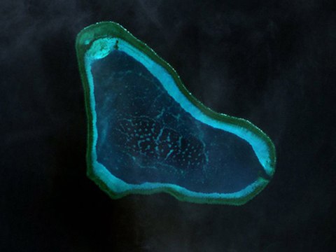 | Bãi cạn Scarborough/Hoàng Nham, tâm điểm tranh chấp và căng thẳng giữa Trung Quốc và Philippines. Ảnh vệ tinh: Google |